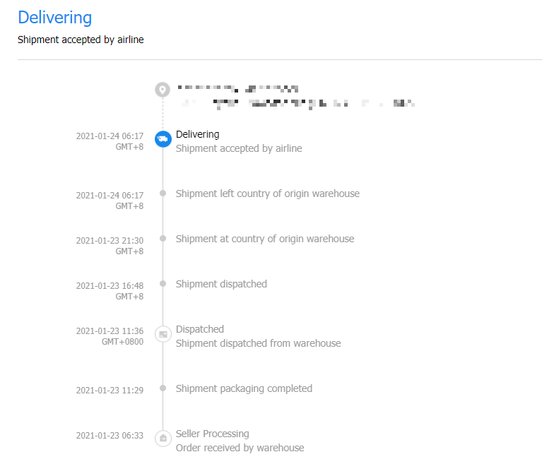こちらは私が購入した別商品。このような感じで追跡ができます。