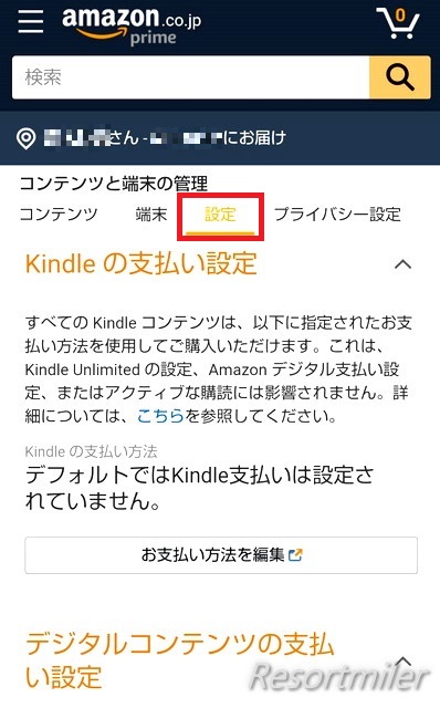 kindle unlimitedを契約後、アカウントサービスへ。