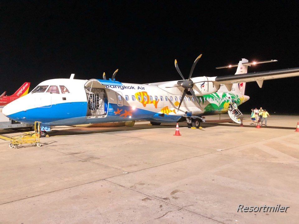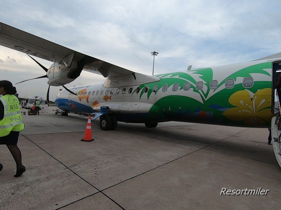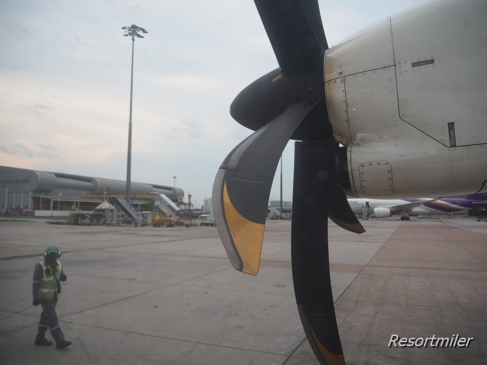 日本の機材は前から乗り込むことが多いのですが、バンコクエアウェイズのプロペラ機は後ろから乗ることが多いです。