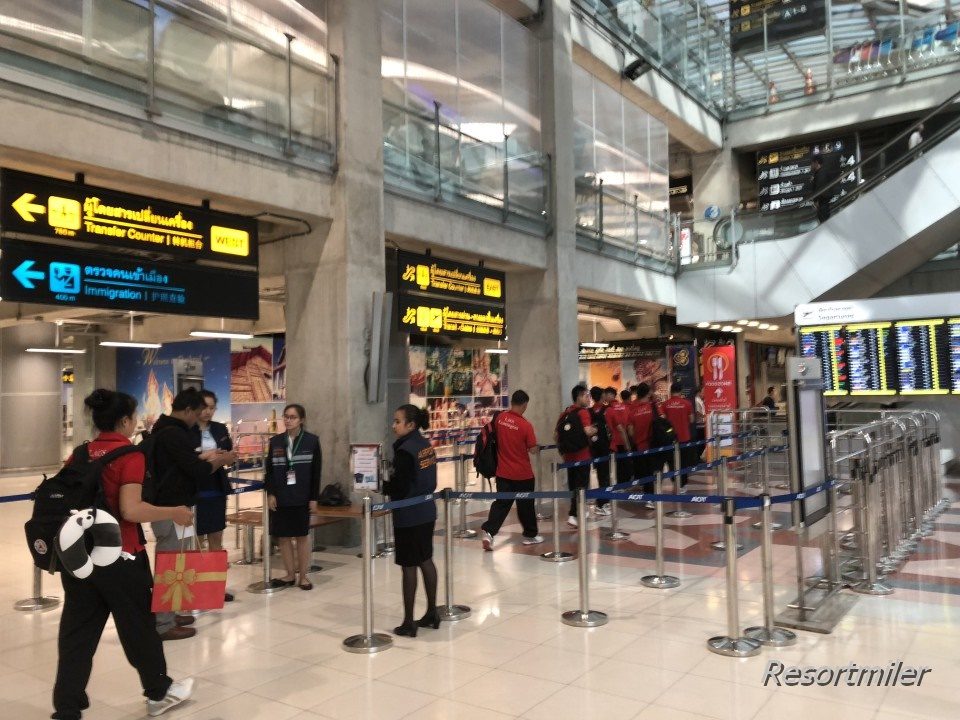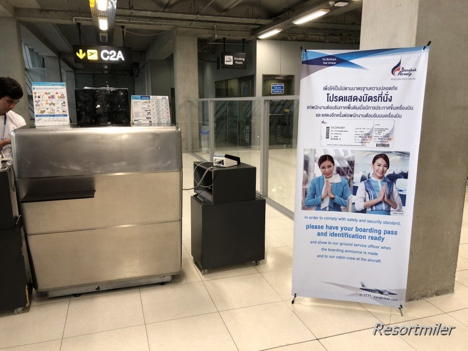 スワンナプーム国際空港は、搭乗口前の待合室に入るのに搭乗券&パスポートチェックがあります。