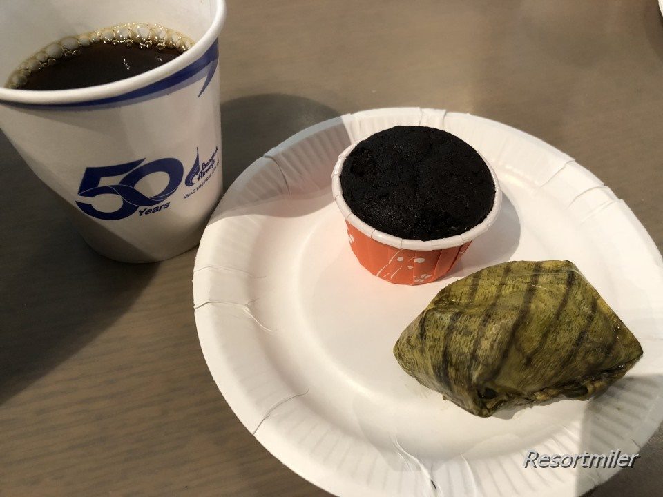 コーヒーとカップケーキ、そして黒豆とバナナを餅米で包んだカオ・トム・マッド Khao Tom Madを頂きました。