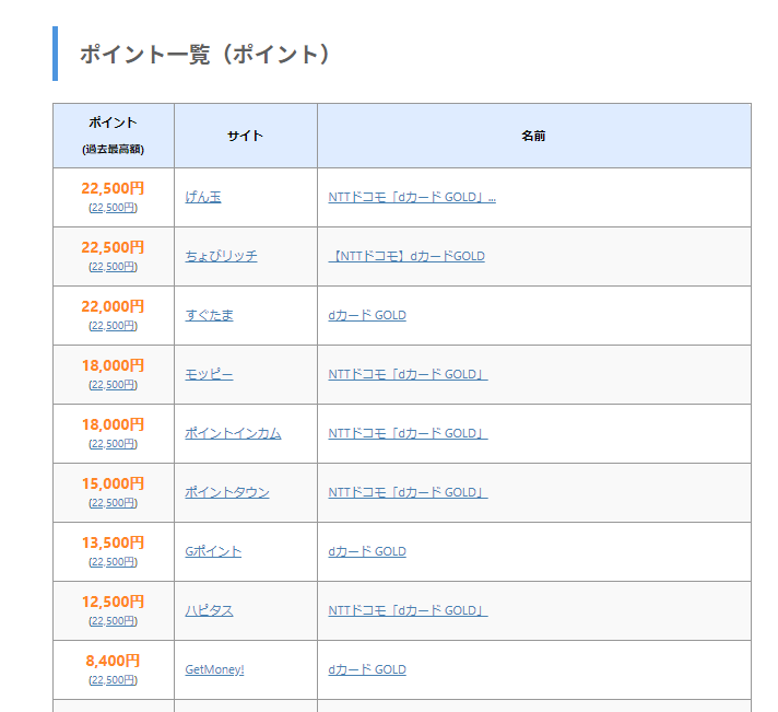 過去のポイントサイト履歴がわかるポイ得サーチでも、過去最高ポイント数を記録しています。(もう少し前には23000円があったような気がしますが)