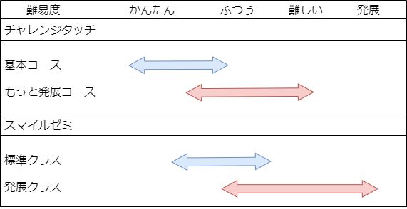 「チャレンジタッチ」と「スマイルゼミ」のレベルの違いをまとめました。