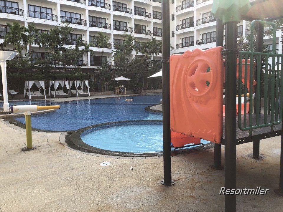 手前が子供用プールです。浅いのでファミリーでも安心ですね。