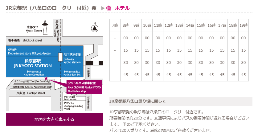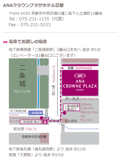 (GoogleMapであれば、クラウンプラザ京都で検索可能です。)