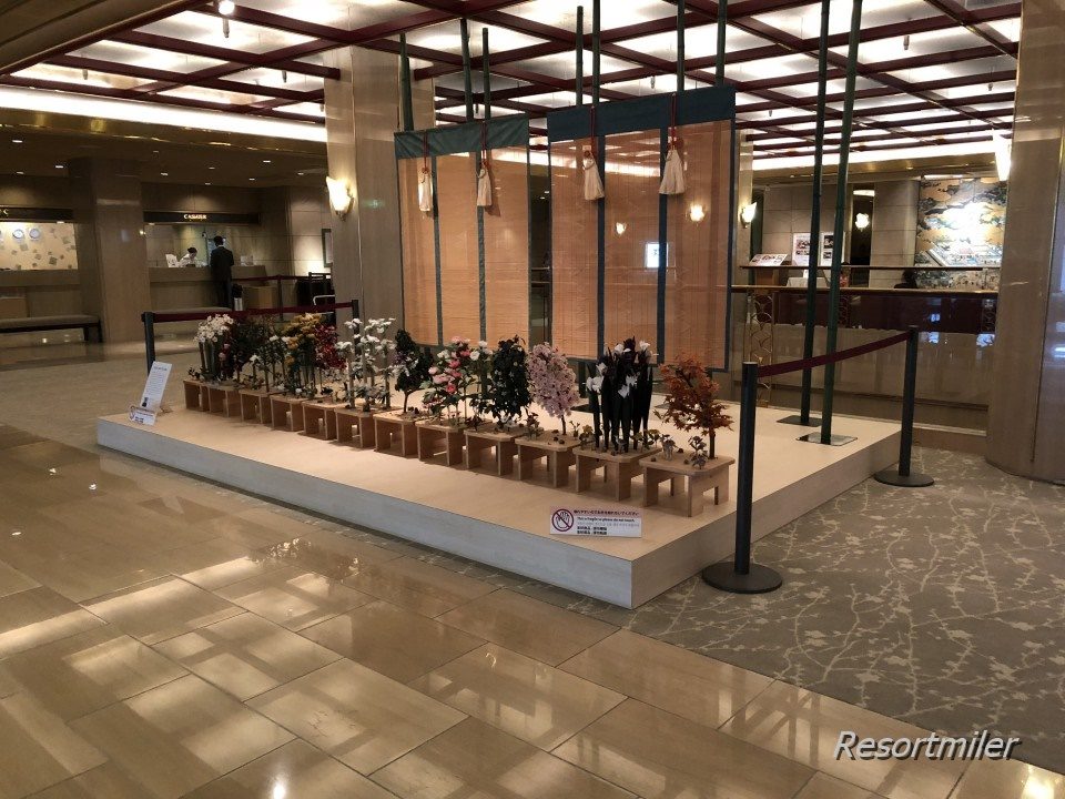 ロビーは京都らしく落ち着いた雰囲気です。結婚式場もありますので、日にちによっては混雑する日もありました。