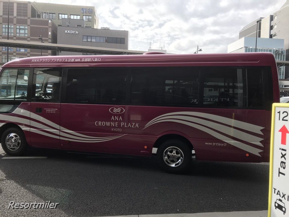 京都駅から乗るシャトルバスはこちら。全体がえんじ色でわかりやすいですね。