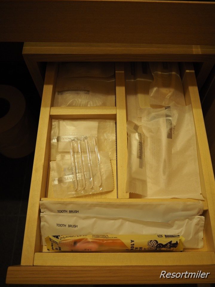 シングルルームは歯ブラシが1本、綿棒が2本と、ツインルームの半分になっていました。