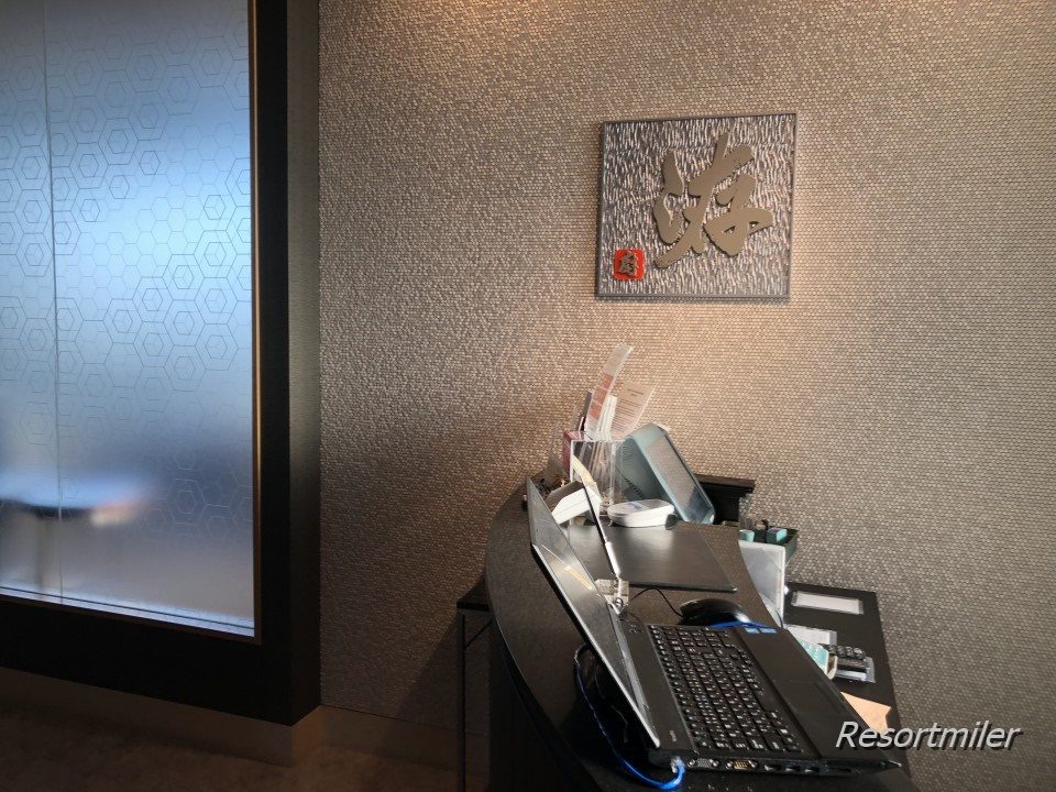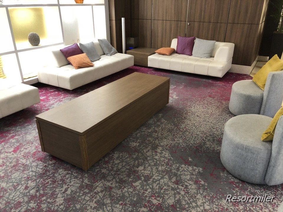 私がチェックインする間、家族はこちらのソファーで休むことができます。ちょっと休むという意味では機能的なスペースでした。