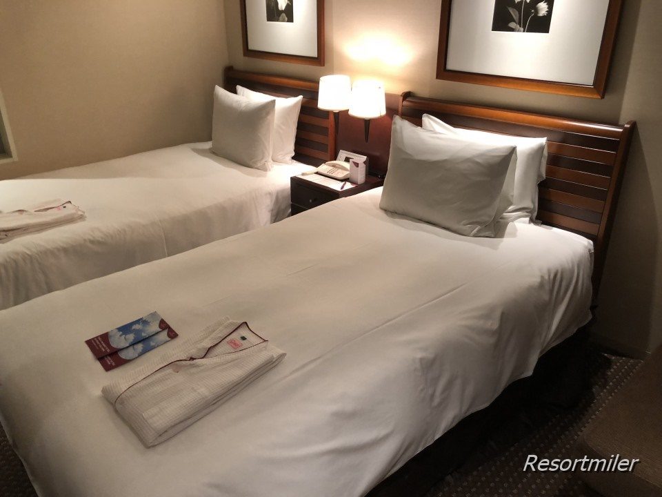 クラウンプラザ岡山のツインルームのベッド幅はすべて110cm。そのツインルームの中で一番広い部屋はスーペリアツインルームで、この部屋だけ追加ベッドを有料で入れることができます。