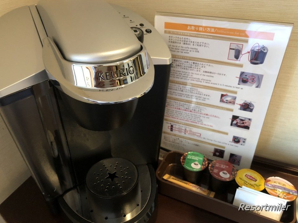 部屋にはエスプレッソマシンがあります。これで紅茶も飲めるんですね。
