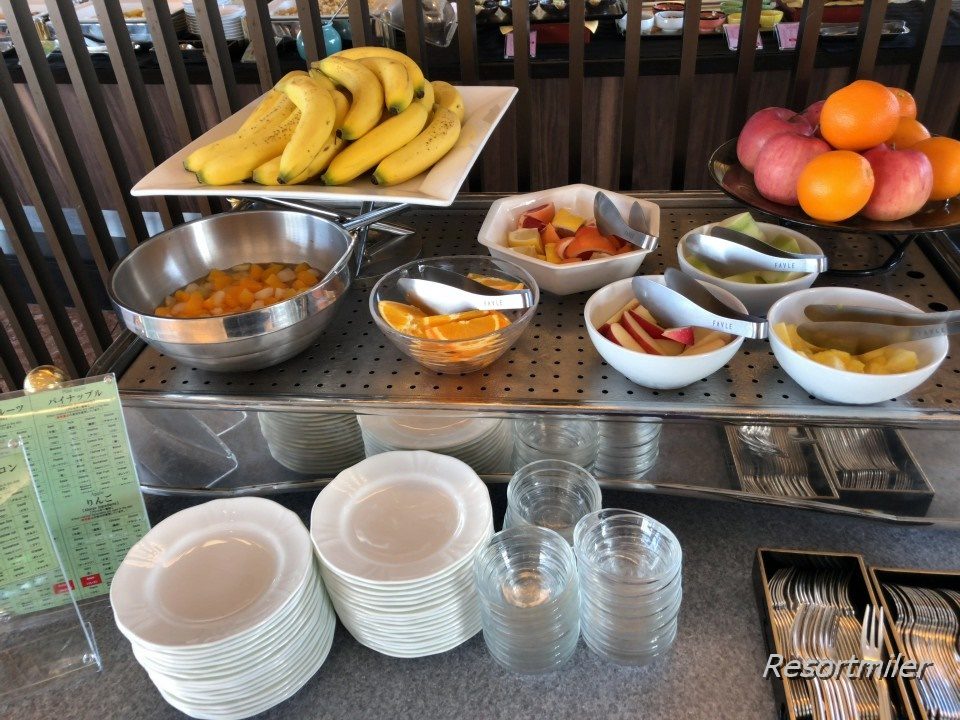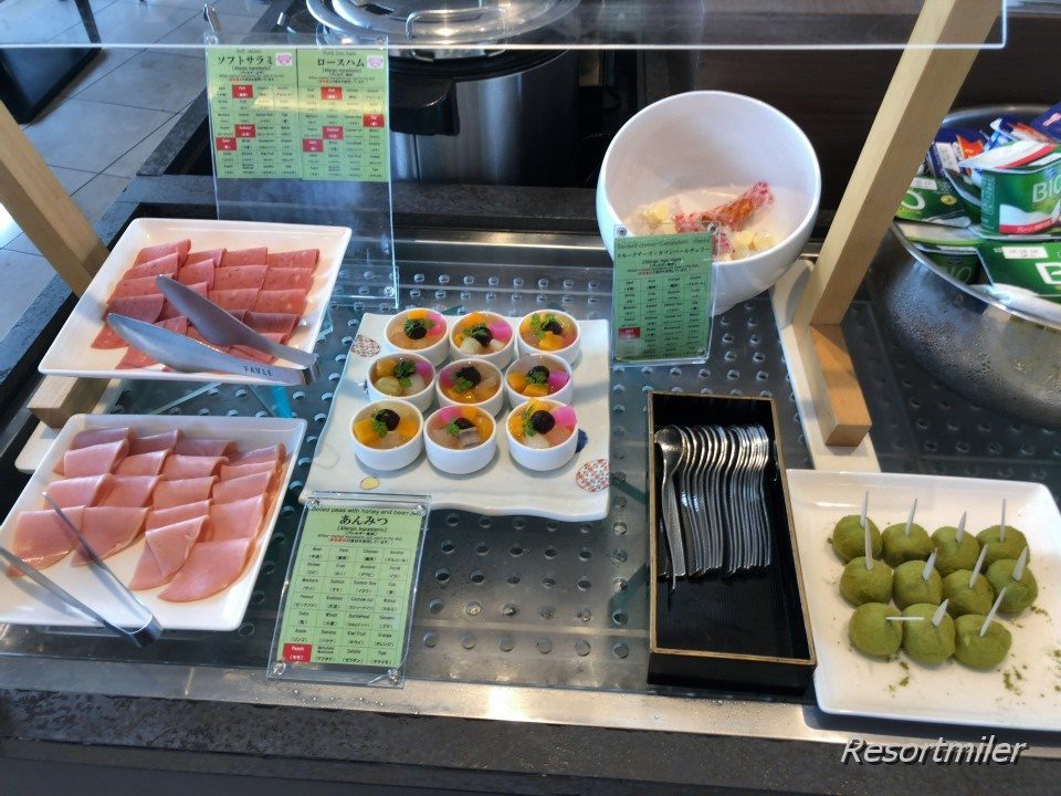 デザート。欧米風に自分でカットするのかと思いきや、手前の容器にすべてカットされてました。