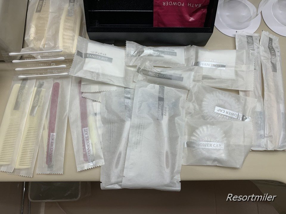ツインルームなので歯ブラシが2本あるのはわかるのですが、マニキュアキットやカミソリが2本あるのはちょっと謎ですね。