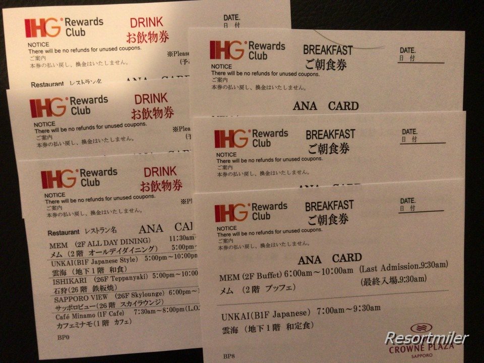 SFC会員はお飲み物券とご朝食券を頂くことができます。