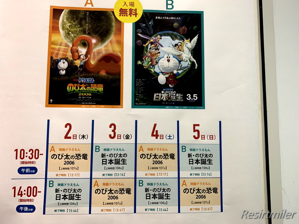 私が行ったときは、正月の特別イベントとして、ドラえもんを上映していました。