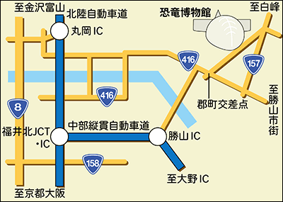 名古屋や大阪からお越しの場合は、北陸自動車道の福井北ICで中部縦貫自動車道へ乗り換えて勝山ICへ。そこからはした道です。