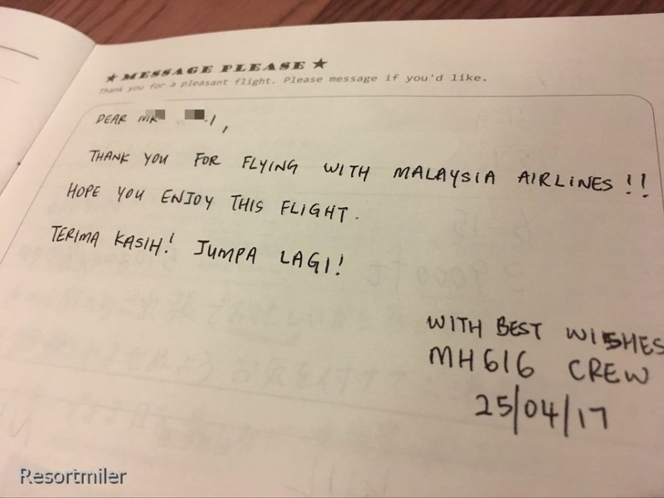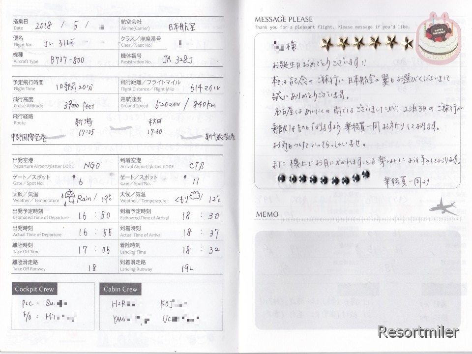なぜか搭乗記録はなく、メッセージを書いていただけました。