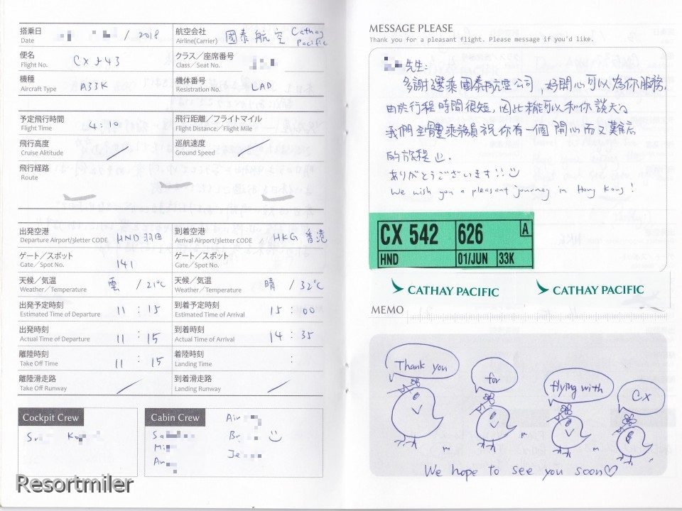 フライトログブックを書いていただくのは、あくまでCAさんの好意です。