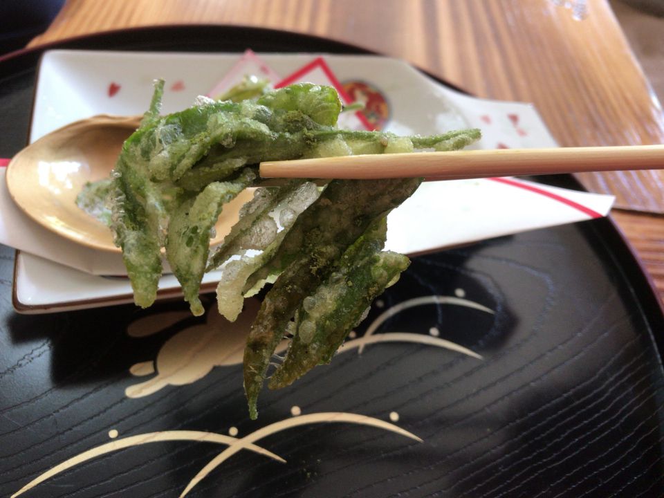 これは美味い!お茶の香りが口いっぱいに広がってきます。日本茶によくある甘みのあるお茶ではなく、少し苦みを感じる天ぷらでした。これが在来種の味というものなんですね。