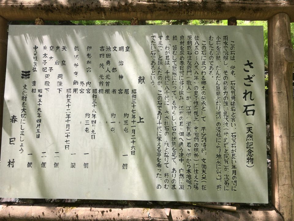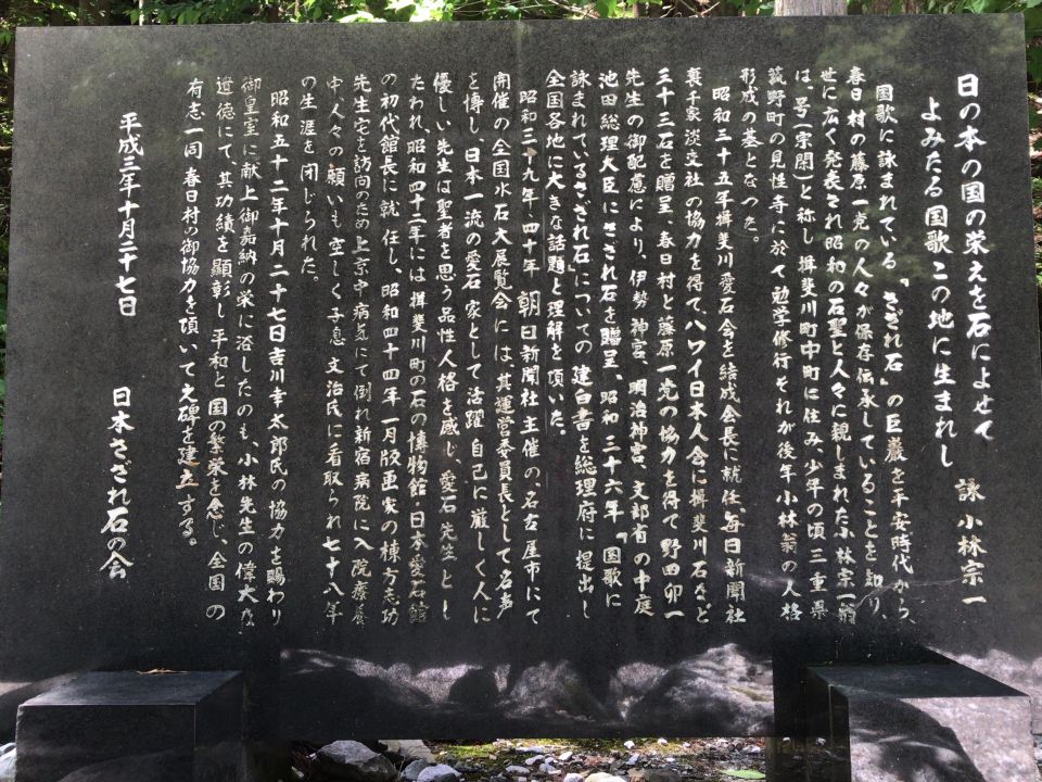 国家「君が代」に出てくる「さざれ石」はここから20分ほど離れた同春日地区にあります。私はそちらへも行ってきたのでわかるのですが、急に君が代の立て看板を見た人はわからないかもしれませんね。(この記事の後半にさざれ石の訪問記があります)