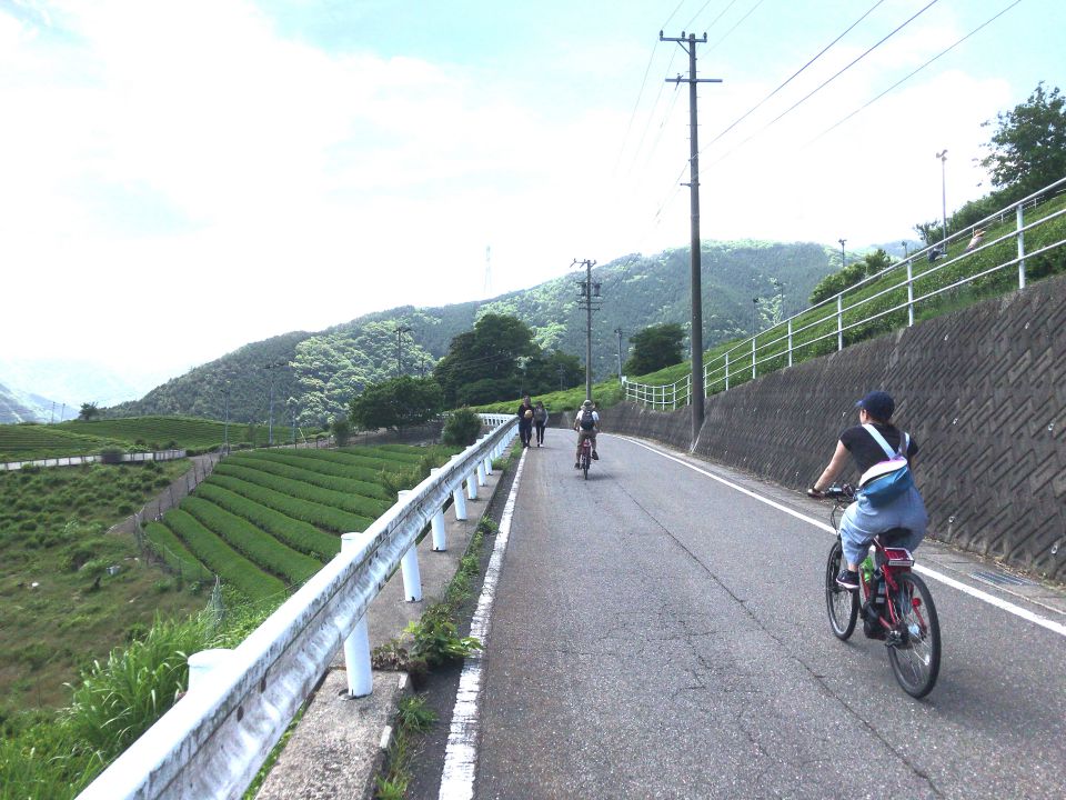 私が訪問した日も、電動バイクとけっこうすれ違いました。きれいな茶畑を見ながらのサイクリングは最高ですね!