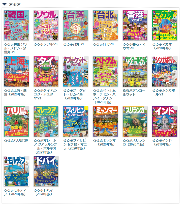 無料で読めるるるぶは、海外・国内合わせて約200冊。