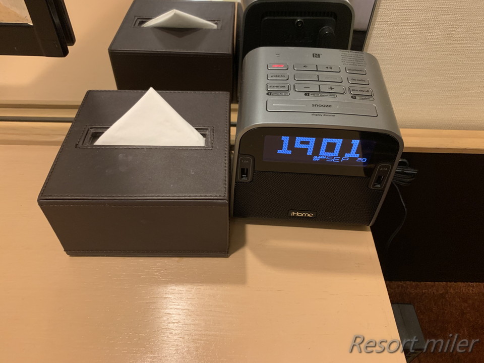 ベッドサイドにある時計。
