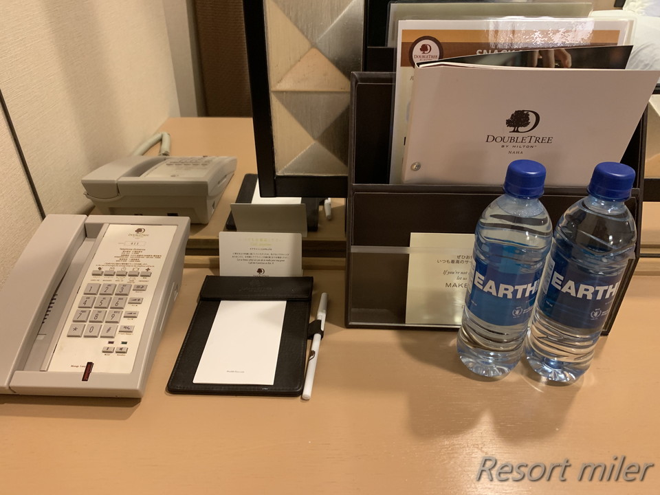 デスク横には、電話とミネラルウォーターがあります。