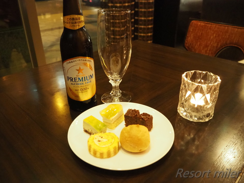 今回はノンアルビール。ケーキも頂きました。