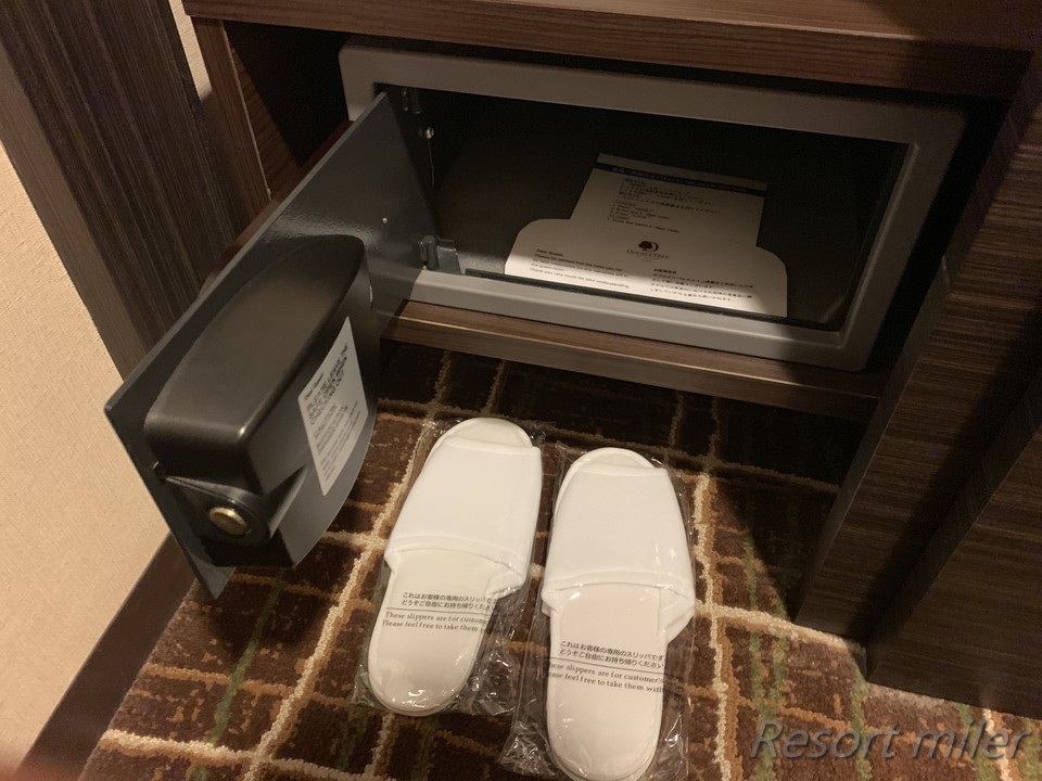 金庫とスリッパ。使い捨てタイプです。