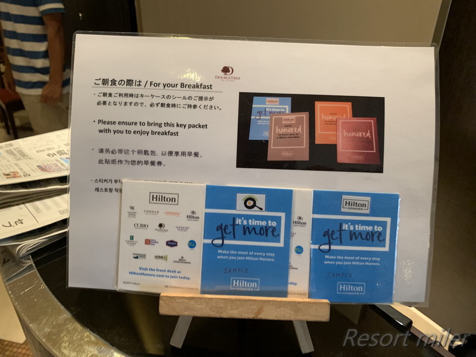 ヒルトンオーナーズ・ゴールド会員はシールに関係なく朝食が無料。ケースにGOLDと書かれています。