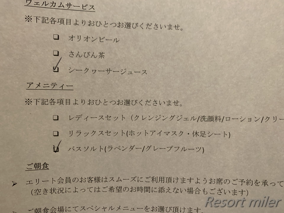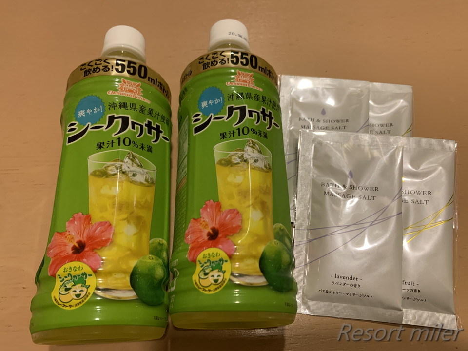ゴールド会員の特典として、ウェルカムサービスとアメニティを一つずつ頂きました。