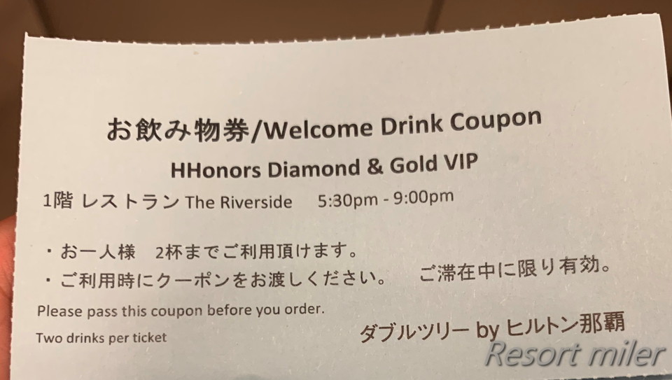 ダブルツリーバイヒルトン那覇はラウンジがありませんが、かわりにウェルカムドリンクのサービスがあります。