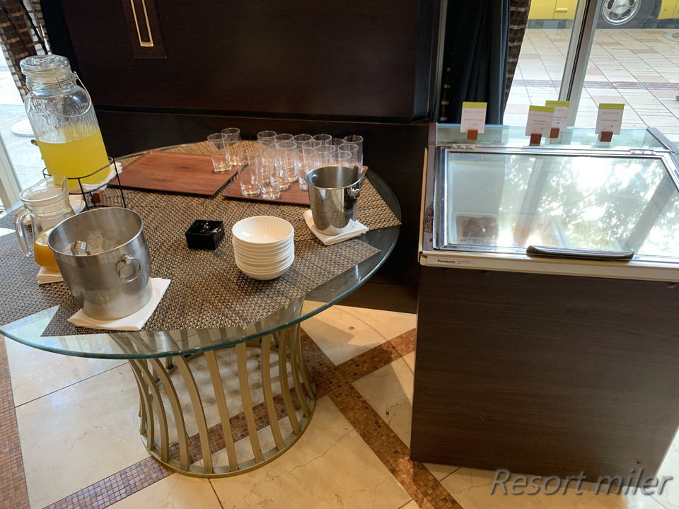 一方で、エグゼクティブエリアにはマンゴージュースとアイスがありました。