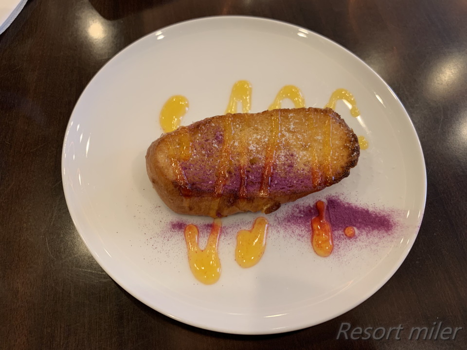 沖縄風フレンチトーストは、紅芋のソースがかかっていました。