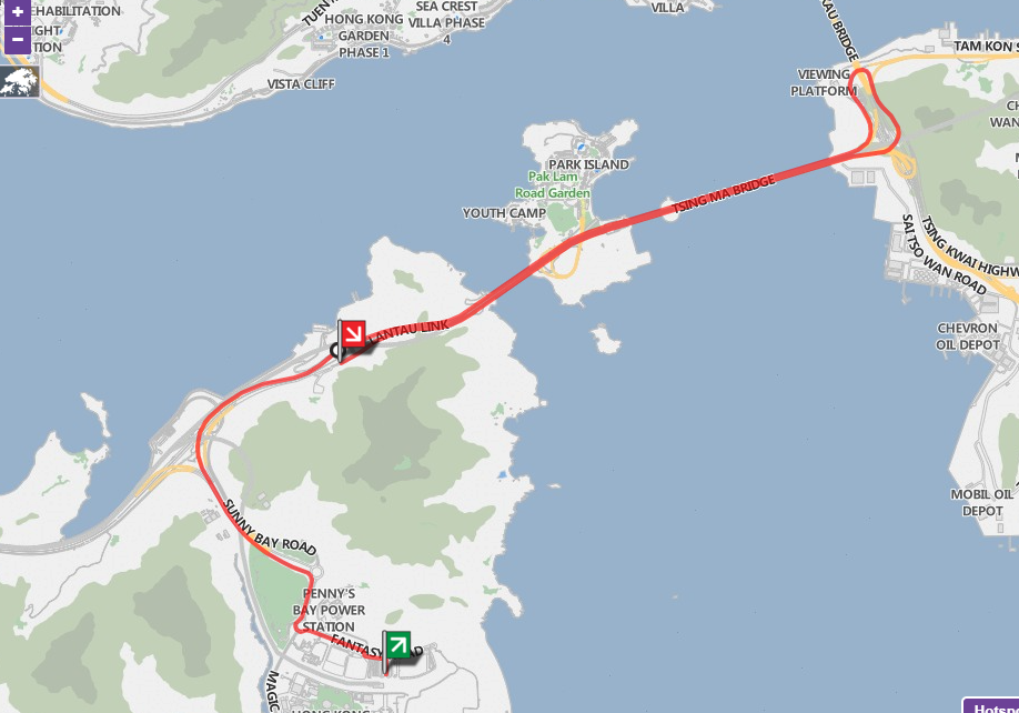 下に地図を載せました。MTR欣澳(Sunny Bay)駅の乗り換えは向かい側のホームですのでとても簡単です。