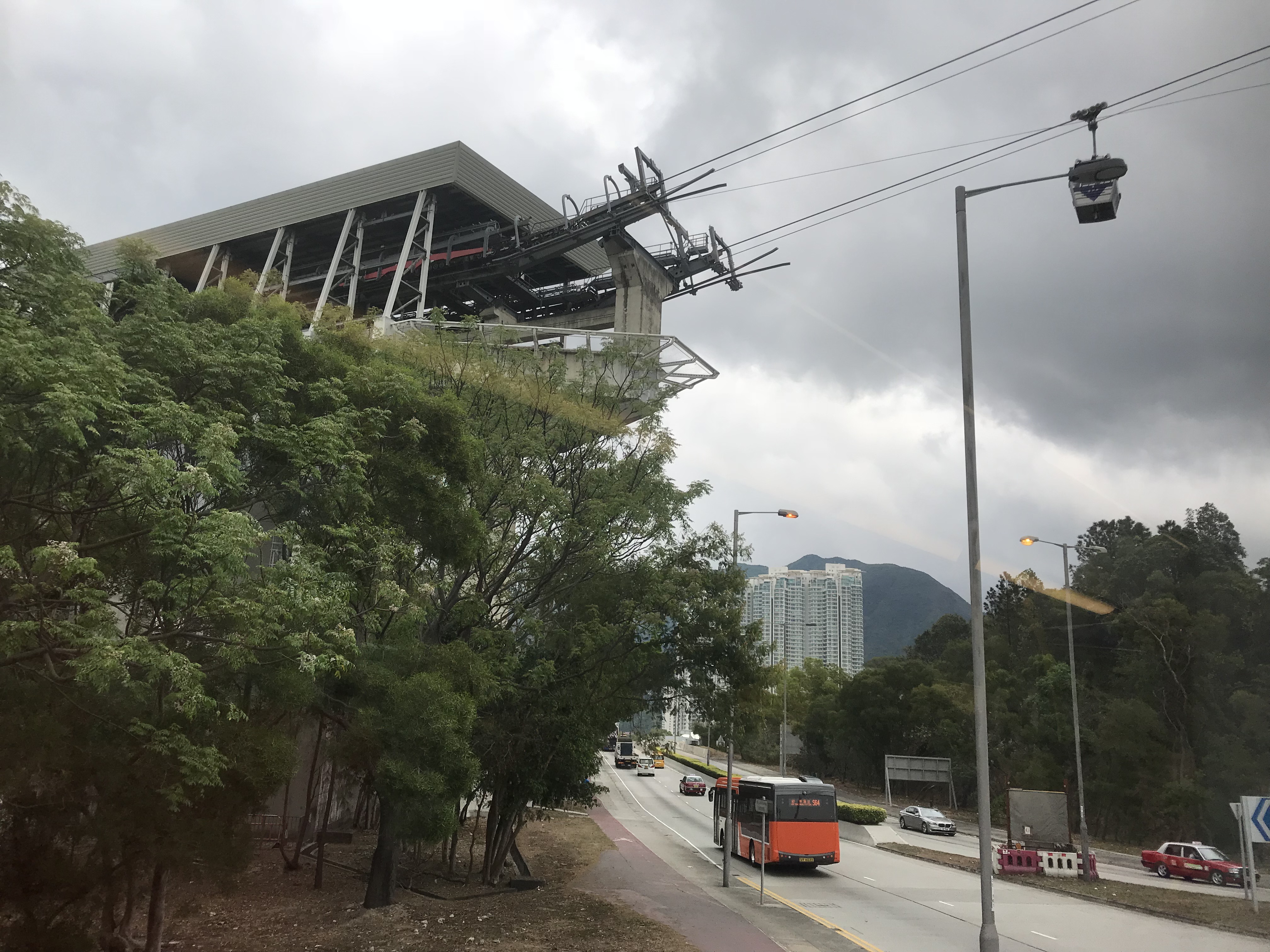 途中、ゴンドラ(香港ではケーブルカーと呼びます)が見えます。これはゴンピン360ですね。
