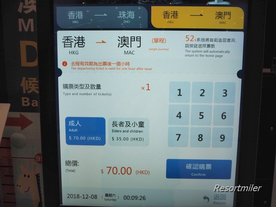 カウンターに到着した時は0時9分でしたので70HKDでした。