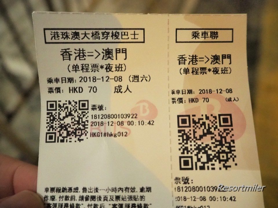 マカオから香港へも乗車しています。