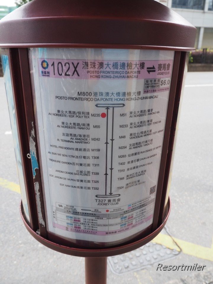 102XはM800港珠澳大橋邊檢大樓とT327 賽馬會を往復するバスです。