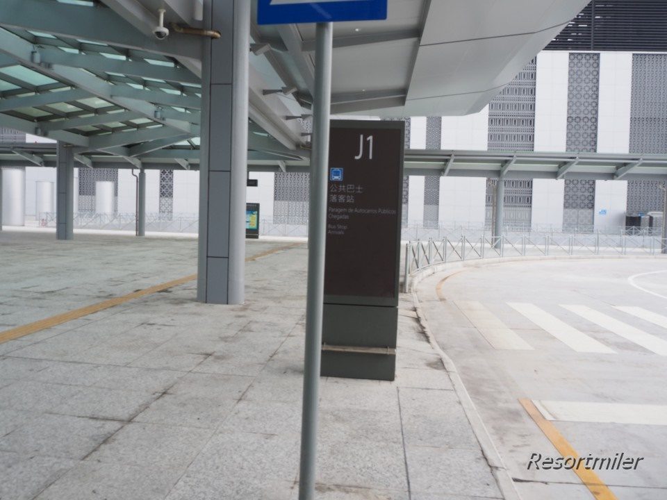 マカオ口岸にあるビルは港珠澳大橋邊檢大樓。バス停の番号はM800。