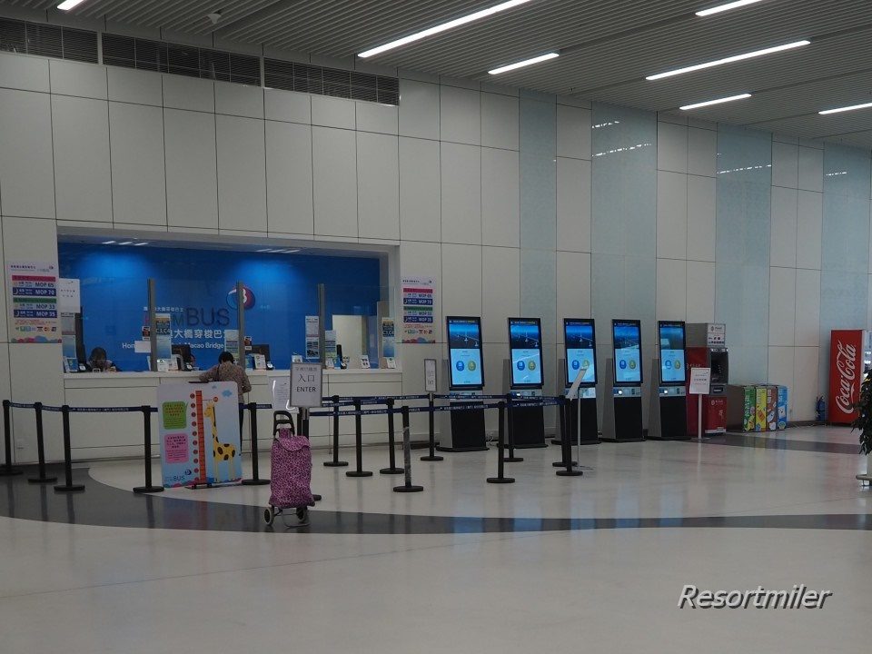 香港口岸までのバスに現金で乗車する場合は、乗車する前に有人の乗車券売り場でチケットを購入してください。 - 香港/マカオどちらにも自動券売機がありますが、オクトパス/マカオパスのみが利用可能。