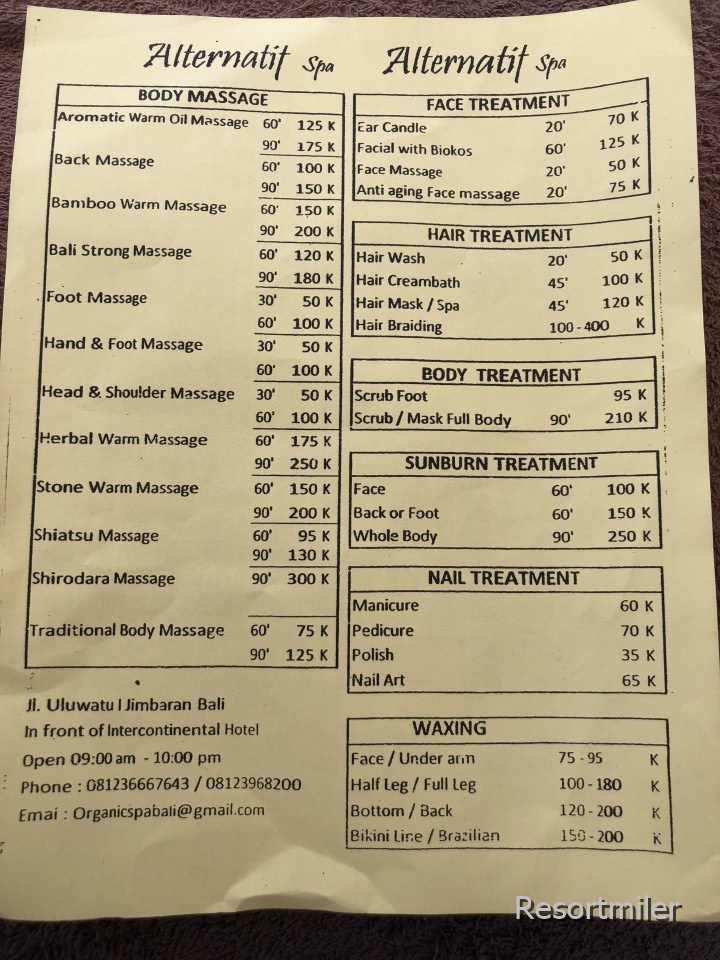 次回バリ島へ行くときは訪問してみたいので、記録がてらお値段をとっておきます。