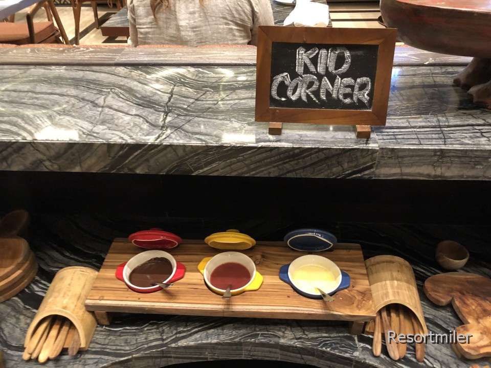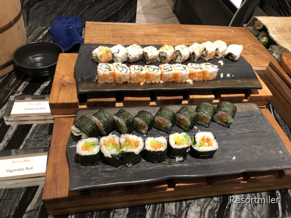 人が多かったので写真を撮っていませんが、左が麺類や、中央がパン類とキッズメニュー、右が野菜やドリンク、フルーツコーナーでした。