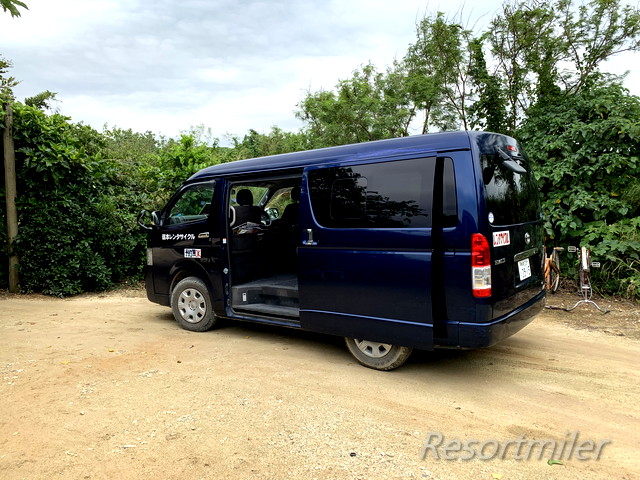 今回は子供がいなかったので、何も考えずに一番小さいマイクロバスに乗りました。嶺本レンタサイクルです。