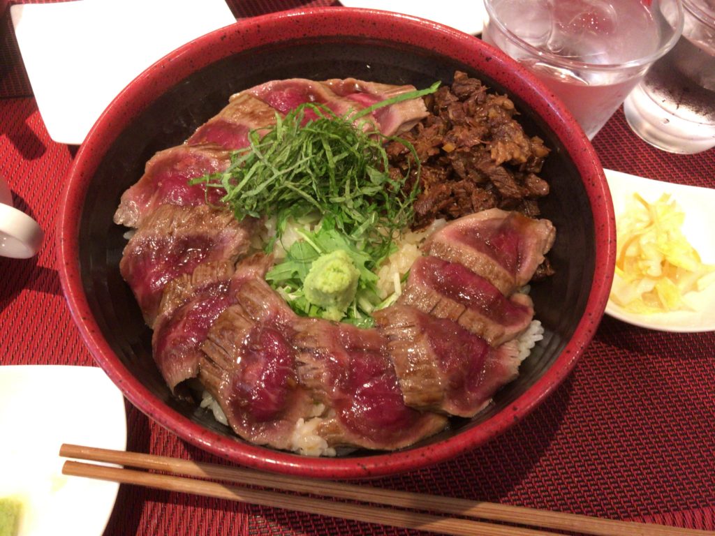 レア肉が食べられないと困るので、あか牛丼×2とあか牛焼肉丼×1を注文しました。