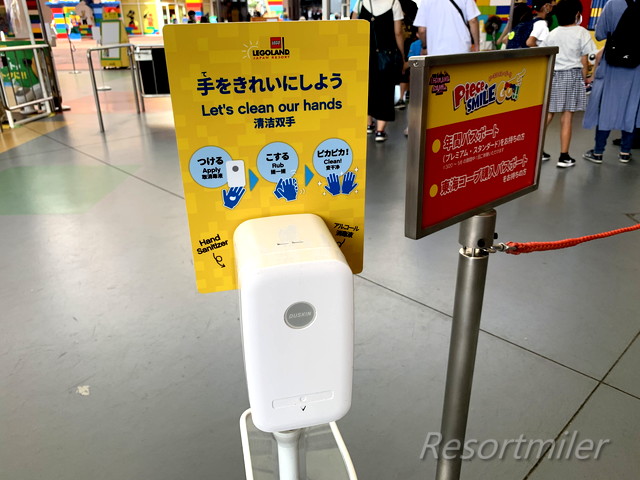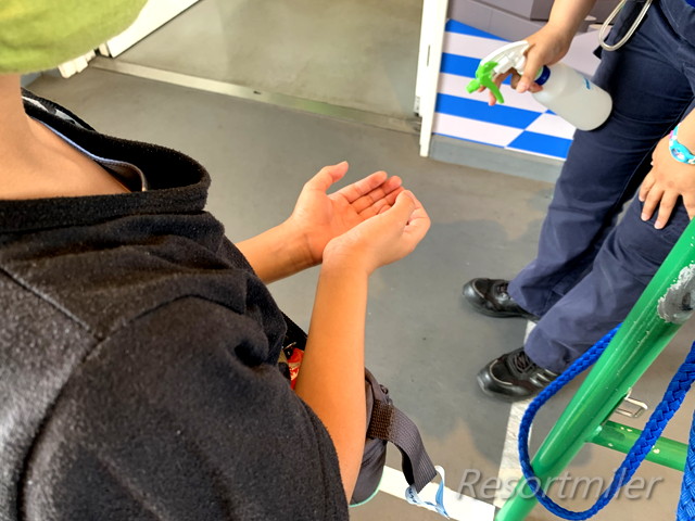 どのアトラクションも、利用する前にアルコール消毒が徹底されています。