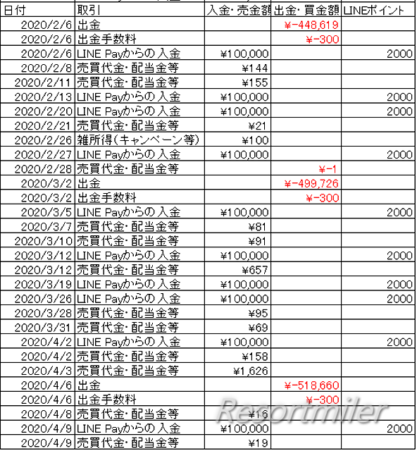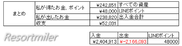 現時点の含み損を含む最終的な収益は、現金部分が+4000円。LINEポイントが+48000ポイント。