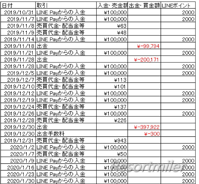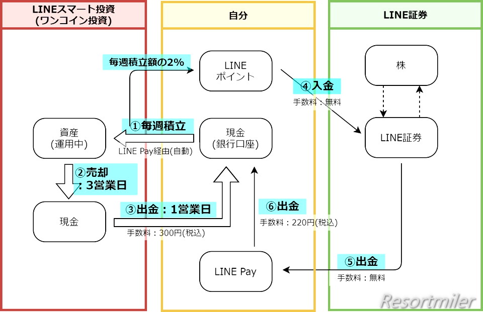 ワンコイン投資は現金がLINE pay残高になったりLINEポイントとして得られたりと複雑。
