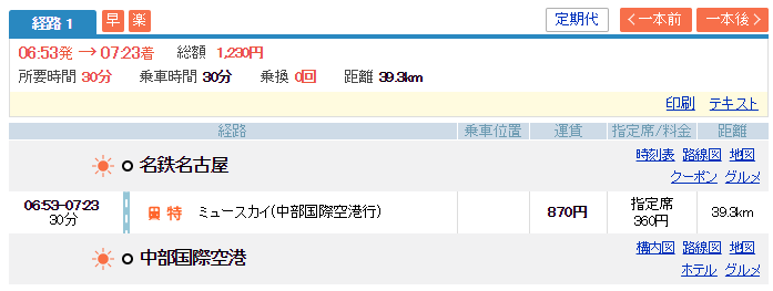 - そもそも、名古屋駅からセントレアへ1時間で行く方法はタクシーしかない。